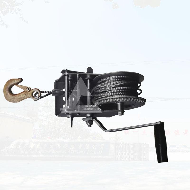 一般下水道、礦井這樣的環(huán)境空間比較小,人們不能使用大型的機(jī)械進(jìn)行工作,這個(gè)時(shí)候可以選擇牽引工具手動(dòng)絞盤和救援三腳架配合來(lái)完成工作??梢韵劝训V用手搖絞車安裝到救援三角架上,然后工人穿上防墜器,佩戴好后,通過(guò)上面工人不斷的搖動(dòng)手動(dòng)絞車的手柄,來(lái)慢慢的下降,使得進(jìn)入井下工作的工人,能夠平安的降落到井下。起重搬運(yùn)機(jī)械廠家撼馬為滿足不同客戶的需求,生產(chǎn)了各種型號(hào)的手搖絞盤,方便客戶使用。